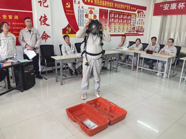 比賽現(xiàn)場,參賽隊(duì)員們個(gè)個(gè)精神抖擻、斗志昂揚(yáng)!靶姆螐(fù)蘇操作”“正壓式空氣呼吸器穿戴”兩個(gè)項(xiàng)目,選手們爭分奪秒?yún)s有條不紊:檢查患者意識(shí)和呼吸、檢查氣瓶壓力、調(diào)整背帶松緊、佩戴面罩并測試氣密性……一套流程行云流水,展現(xiàn)出扎實(shí)的技能功底與高度的安全意識(shí);顒(dòng)現(xiàn)場,公司安全總監(jiān)鐵旭東、安全主管何寧、海什全程監(jiān)督評(píng)分,并針對(duì)操作細(xì)節(jié)進(jìn)行實(shí)時(shí)監(jiān)控,將比賽轉(zhuǎn)化為安全培訓(xùn)課堂,達(dá)到競賽和培訓(xùn)相結(jié)合。參賽職工紛紛表示,通過比武不僅提升了應(yīng)急處置能力,更深刻體會(huì)到規(guī)范操作的重要性。