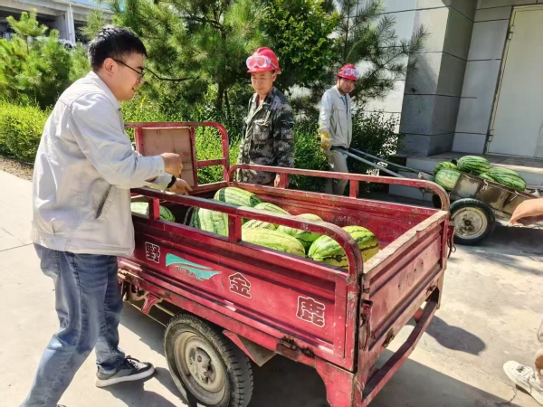 此次送清涼慰問活動(dòng)由寧夏金昱元化工集團(tuán)股份有限公司工會(huì)統(tǒng)籌,固原基地工會(huì)提前謀劃、精心準(zhǔn)備,根據(jù)崗位需求,采購2萬斤硒砂瓜,為一線職工送去組織關(guān)愛,以“娘家人”的貼心服務(wù),為職工撐起防暑降溫遮陽傘。