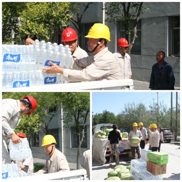 高溫如虎,關(guān)愛(ài)似海。集團(tuán)公司黨委副書記尚興和其他領(lǐng)導(dǎo)把西瓜、飲料、茶葉等慰問(wèn)品送到一線員工手中,送上集團(tuán)公司黨委對(duì)一線員工的深切關(guān)愛(ài),員工們對(duì)集團(tuán)公司黨委的深切關(guān)懷深表感謝,戰(zhàn)高溫、斗酷暑、保安全的信心倍增。